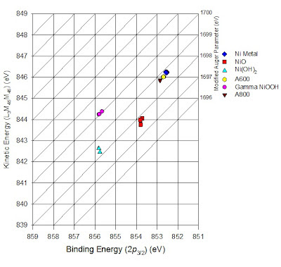 as a Wagner plot, chemical state plot or chemical state diagram. Positions of